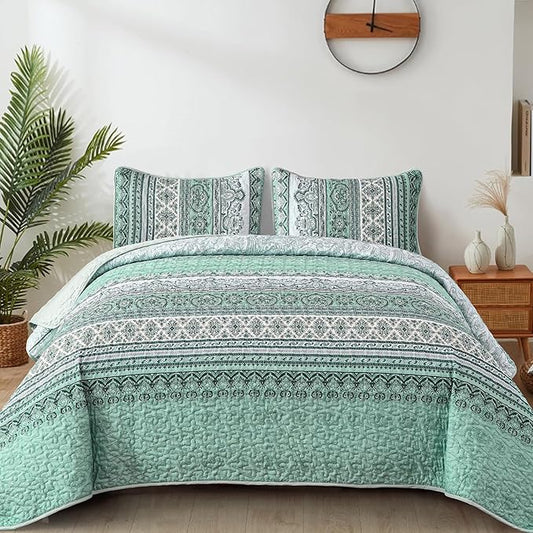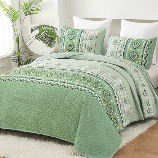 🔥 Best SellerBoho Aztec Olive Green Reversible 3 Piece Quilt Set