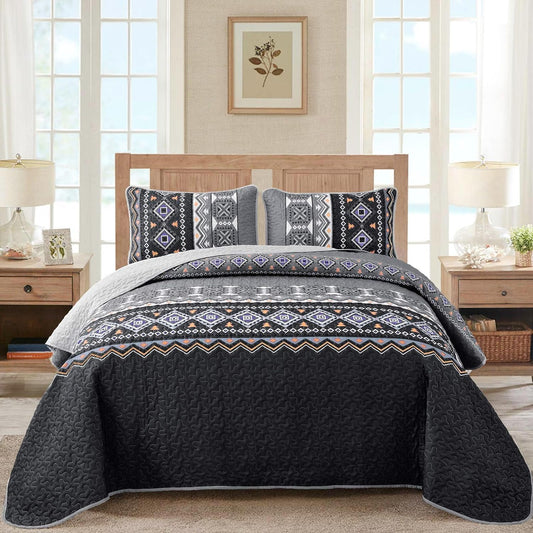 Regular price From $139.00 CADFrom $139.00 CAD Regular priceUnit price per$220.00 CADSale priceFree Shipping | 3-9 Business daysSaleBoho Aztec Black & Grey Reversible 3 Piece Quilt Set