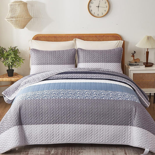🔥 Best SellerBoho Blue & Grey Reversible 2/3 Piece Bedding Quilt Set