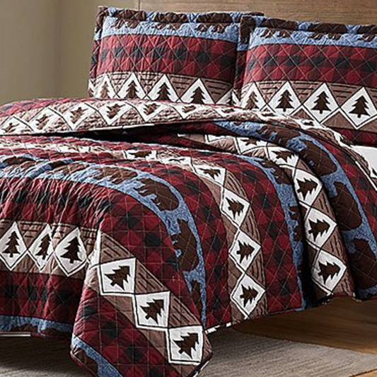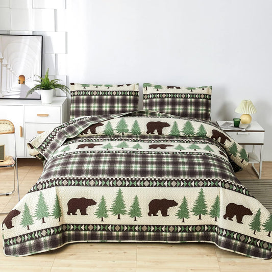 Brown Bears & Trees Lodge 3 Piece Bedding Quilt Set