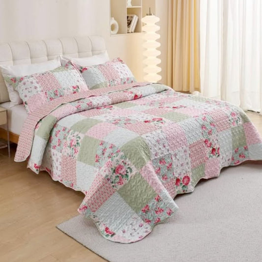 🎉 New Year DealsPink Floral Patchwork 3 Piece Bedding Quilt Set