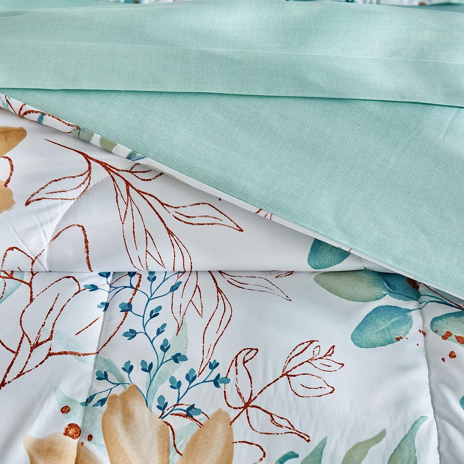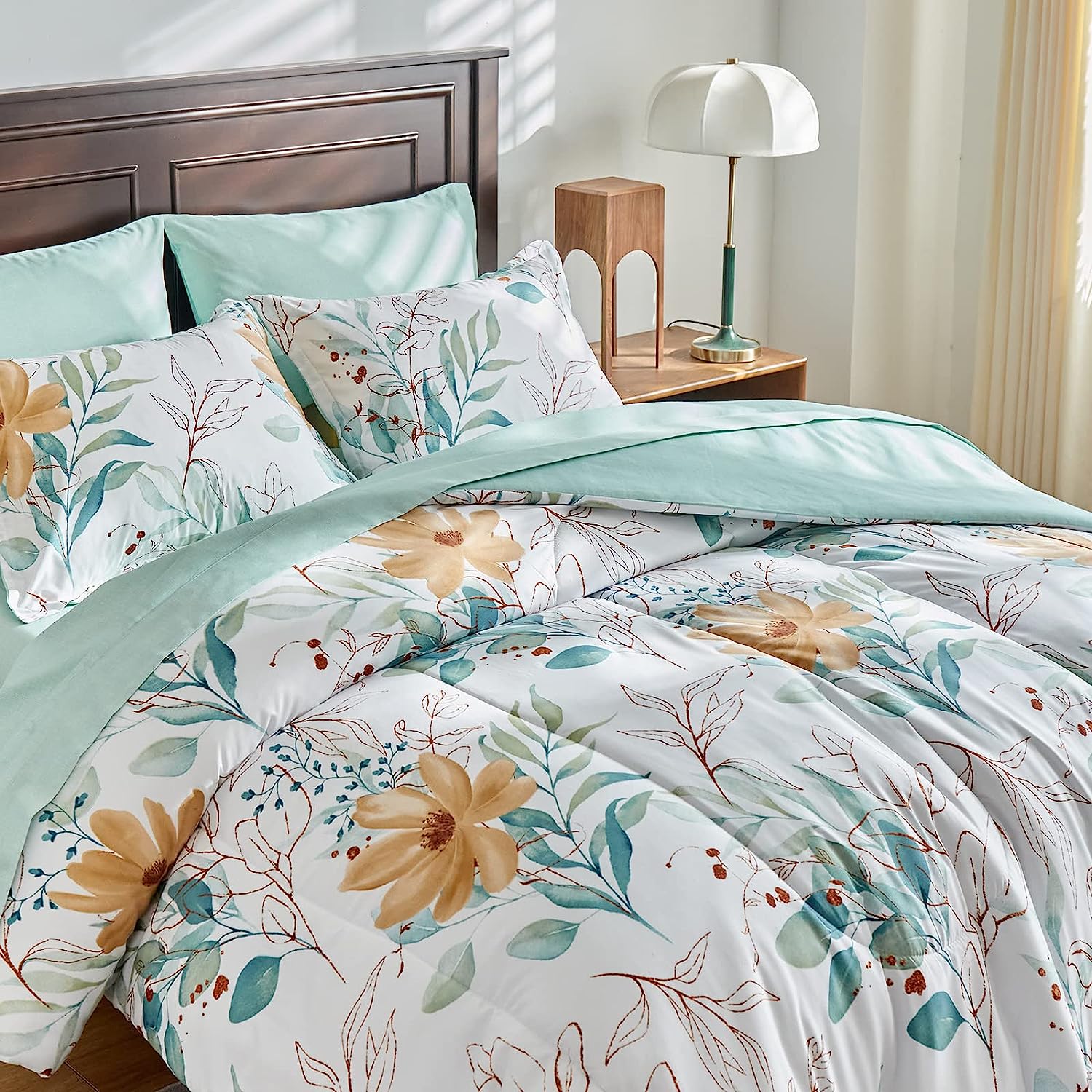 Ensemble d'édredon 7 pièces floral vert botanique et jaune
