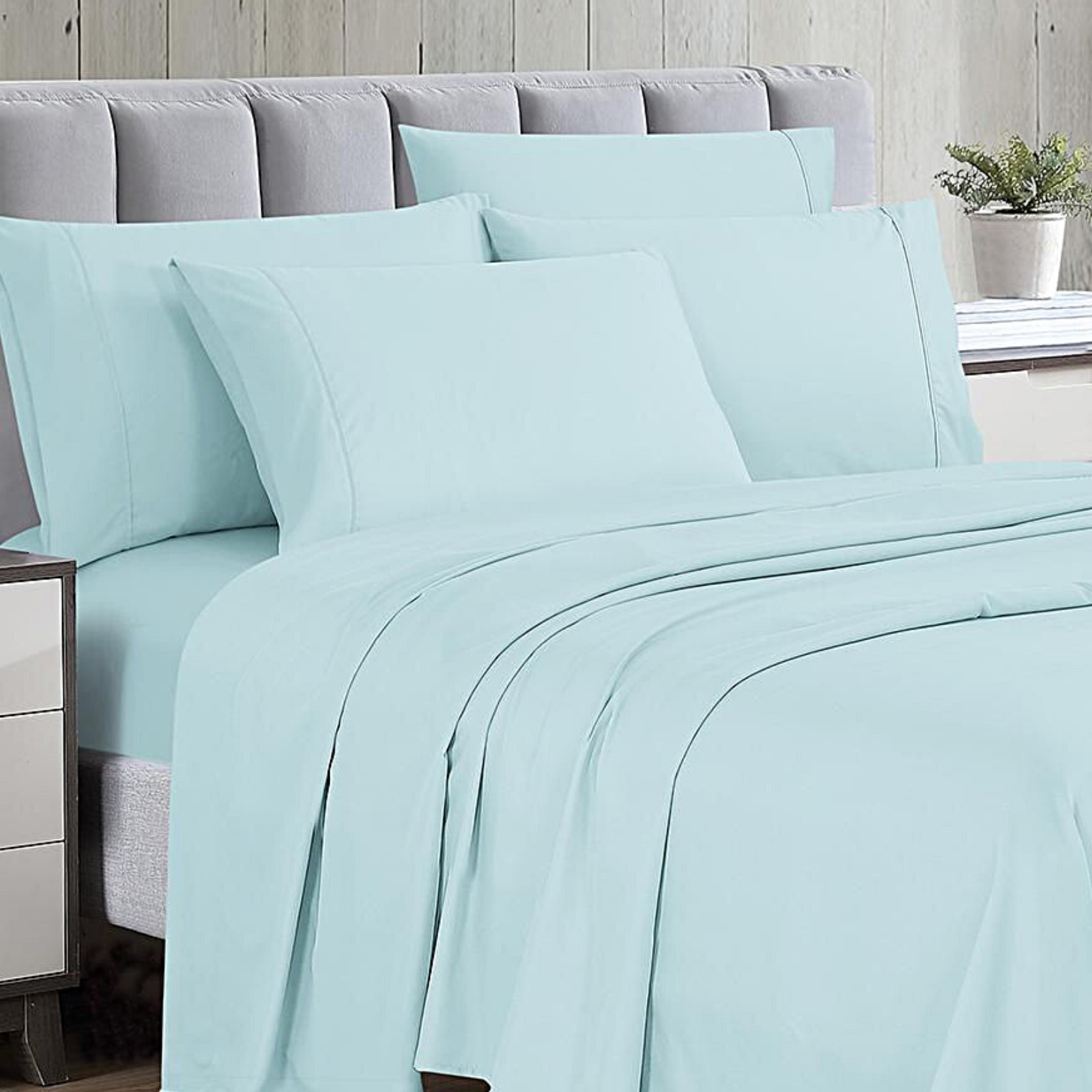 Ensemble de draps 6 pièces à poche profonde aqua clair uni