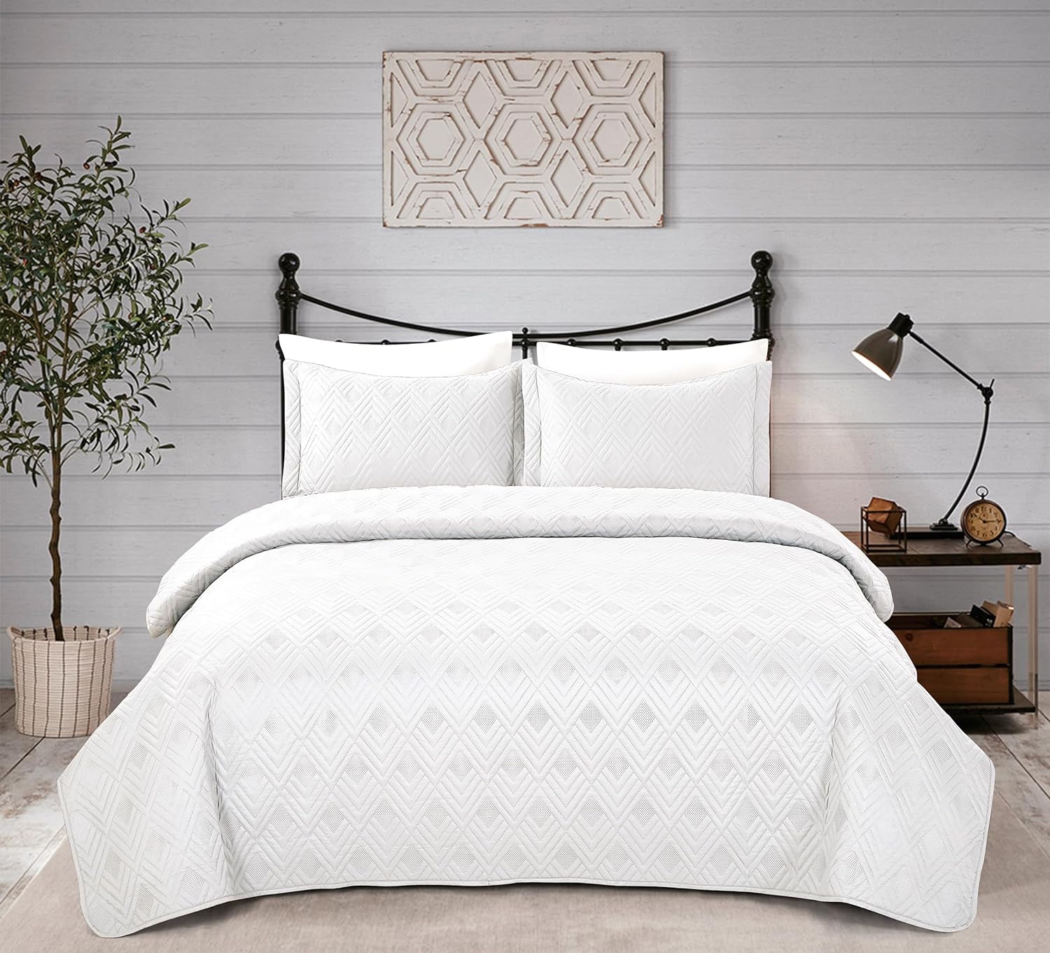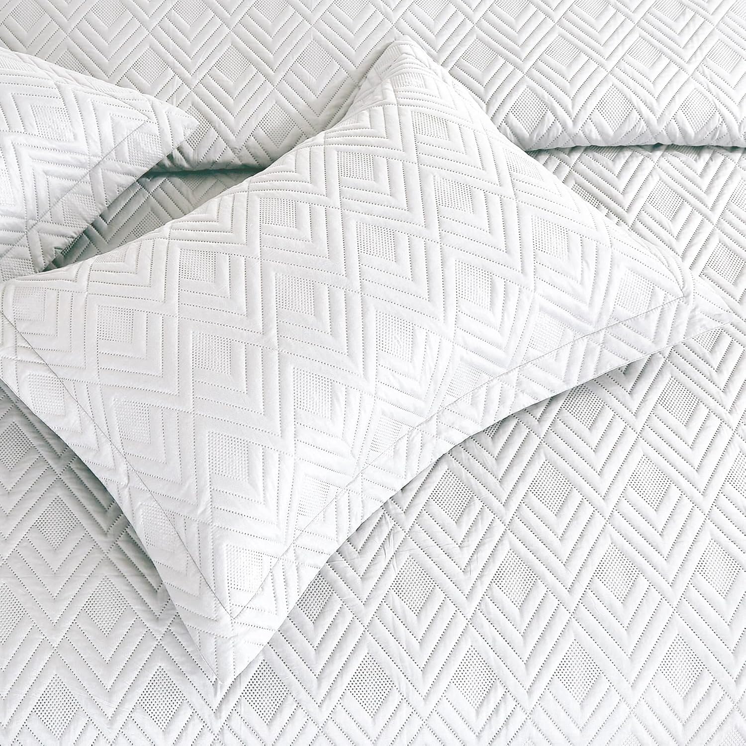Coutures matelassées géométriques délicates en blanc uni, faciles à assortir au décor de votre chambre, vous offrant une sensation élégante et classique !