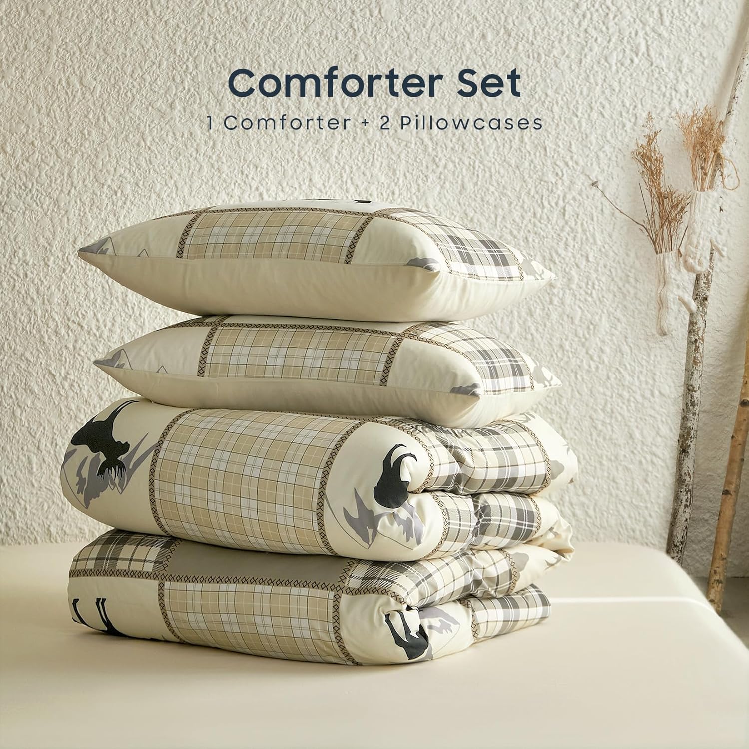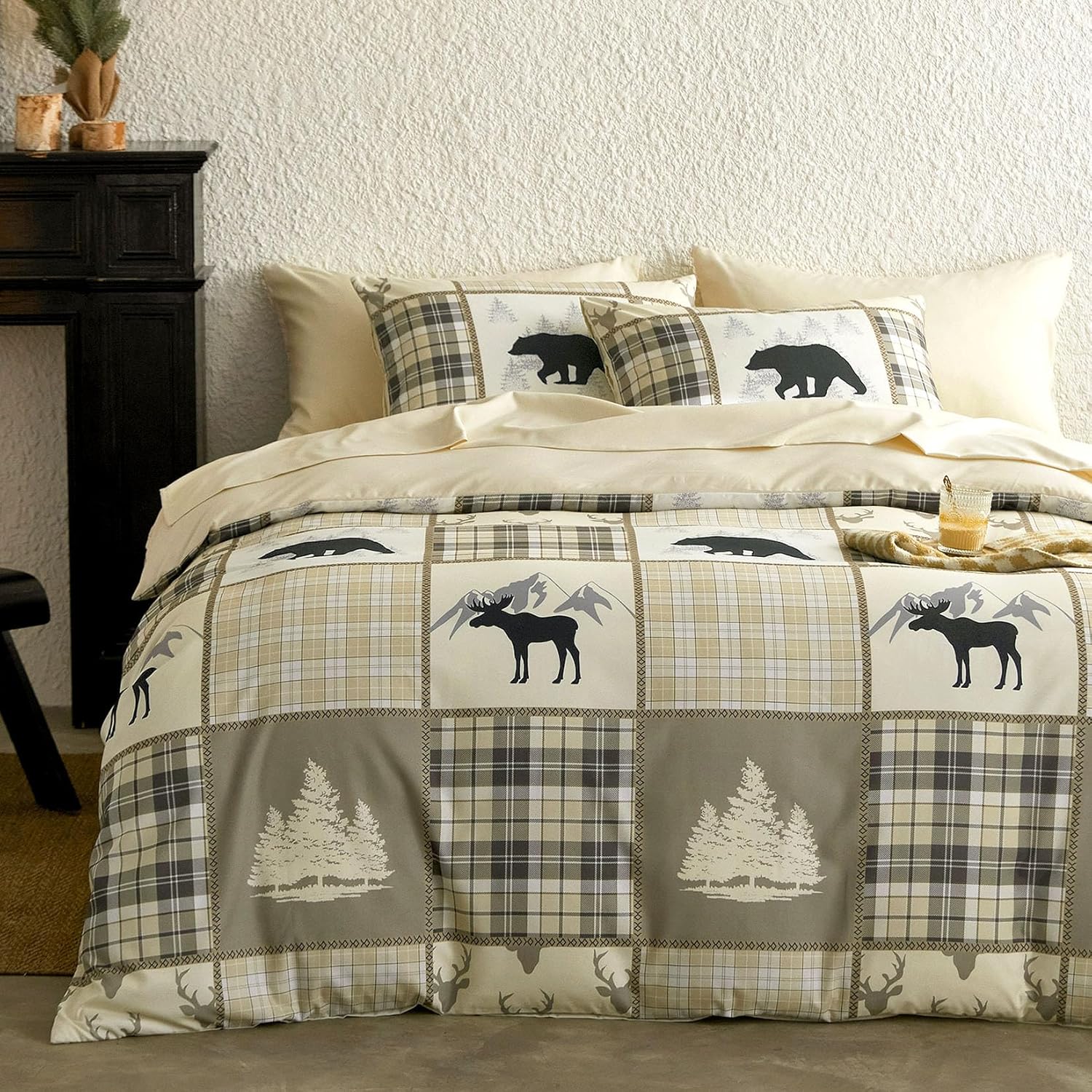 Close your eyes and think of an amazing night's sleep with one of the coziest comforters ever made. The beige patchwork design features a combination of plaid and woodland animal motifs with beige and white accents. š»