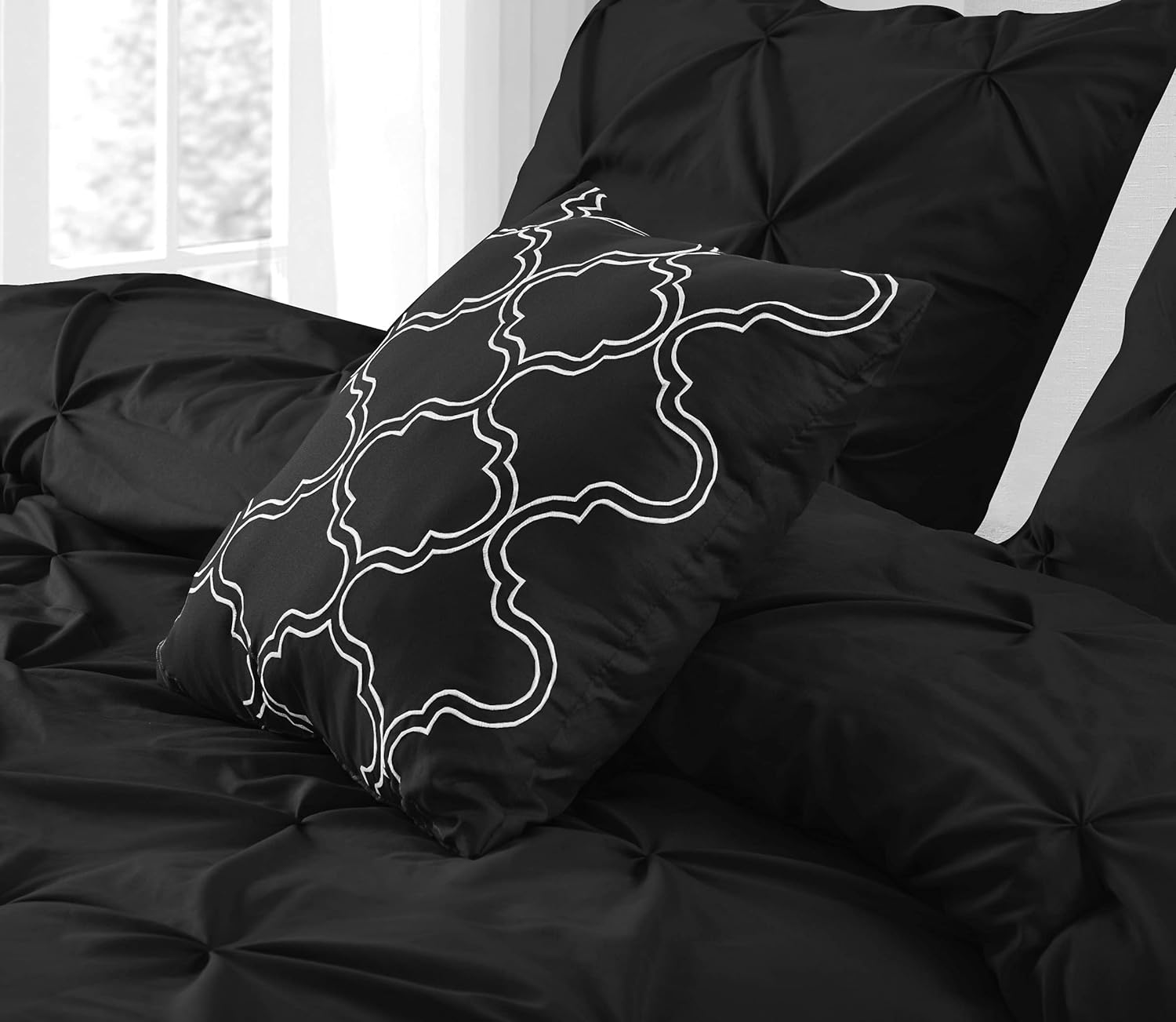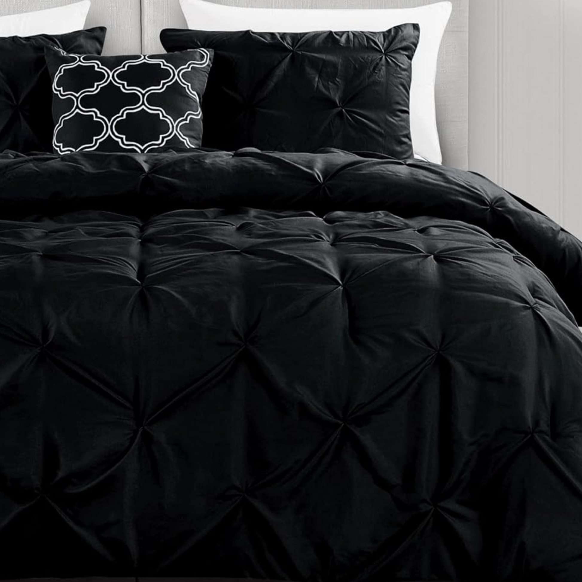 Black Pinch Pleated 4 Piece Bedding Comforter Set
