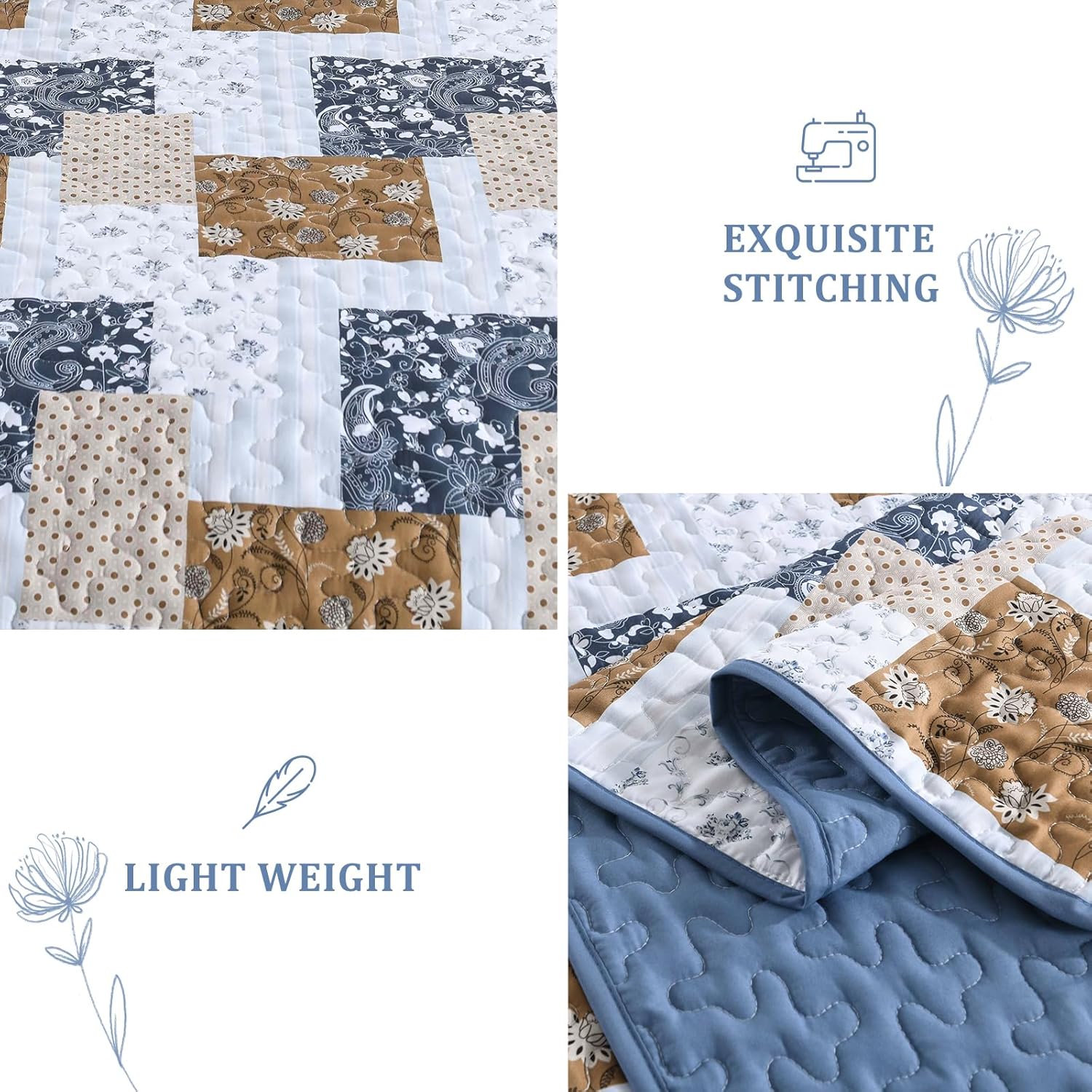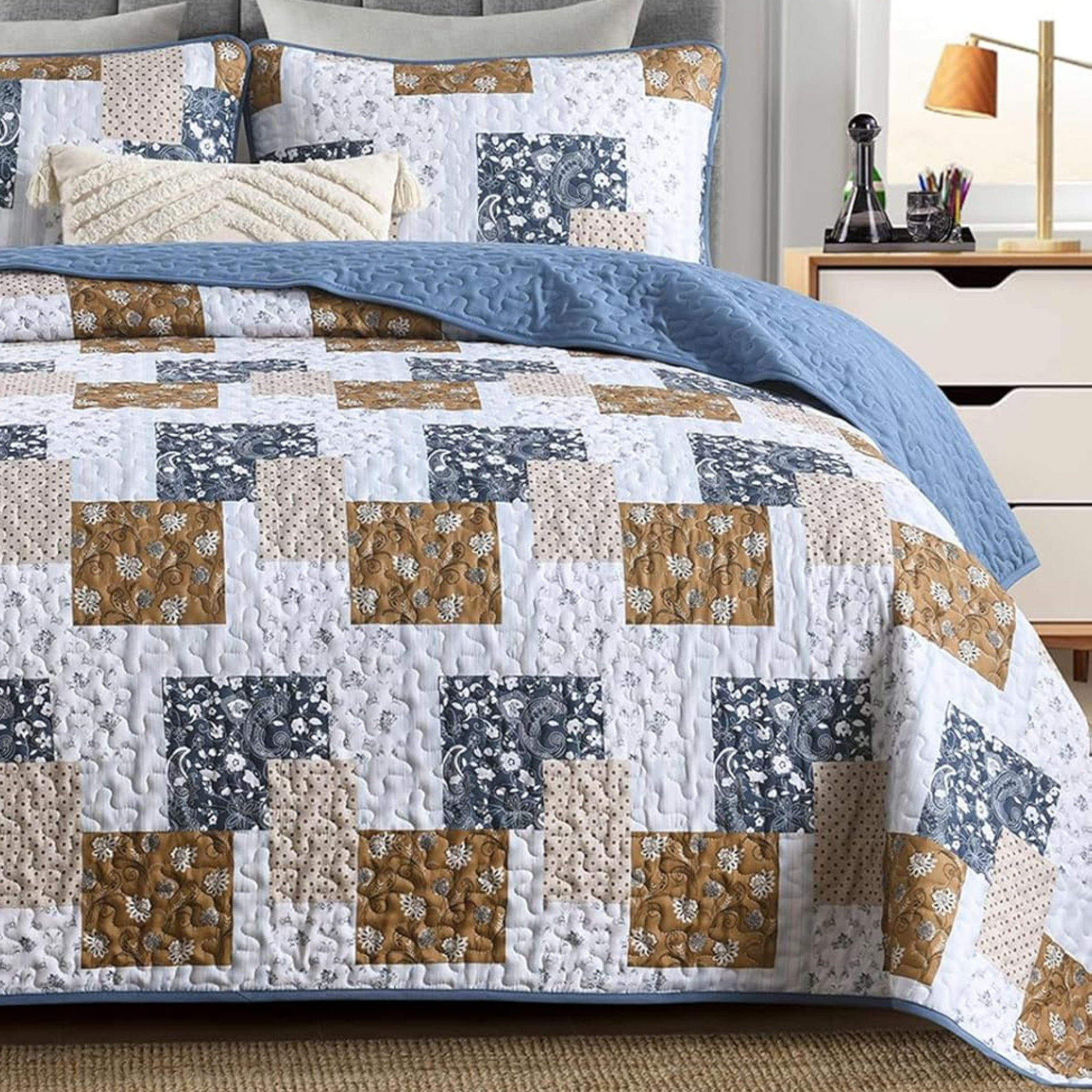 šĀ Brighten up and refresh your bedroomĀ with this beautiful Blue & Brown Floral Paisley Patchwork 3-Piece Bedding Quilt Set.