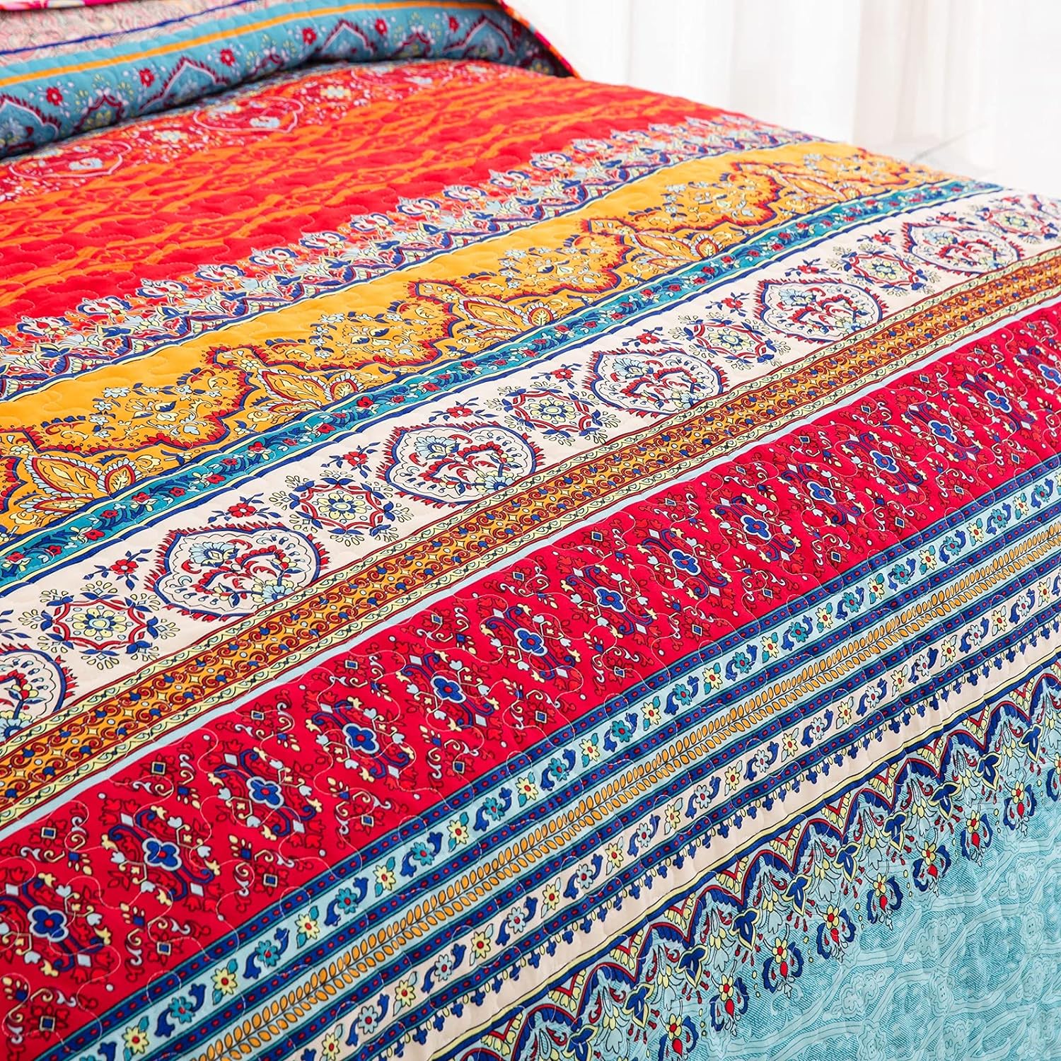 Bohemian Orange & Blue Reversible 3 Piece Quilt Set