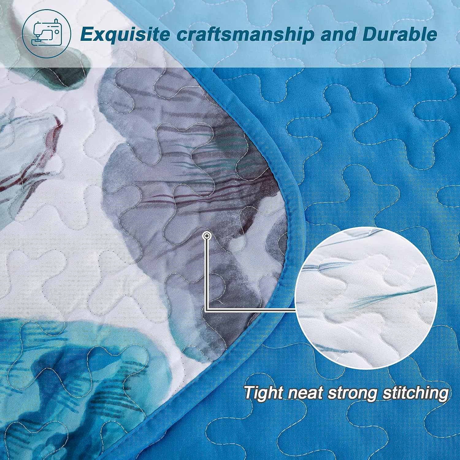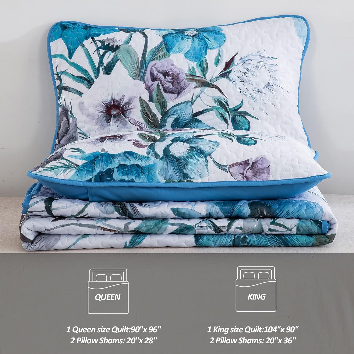 Boho Blue Floral Reversible 3 Piece Bedding Quilt Set