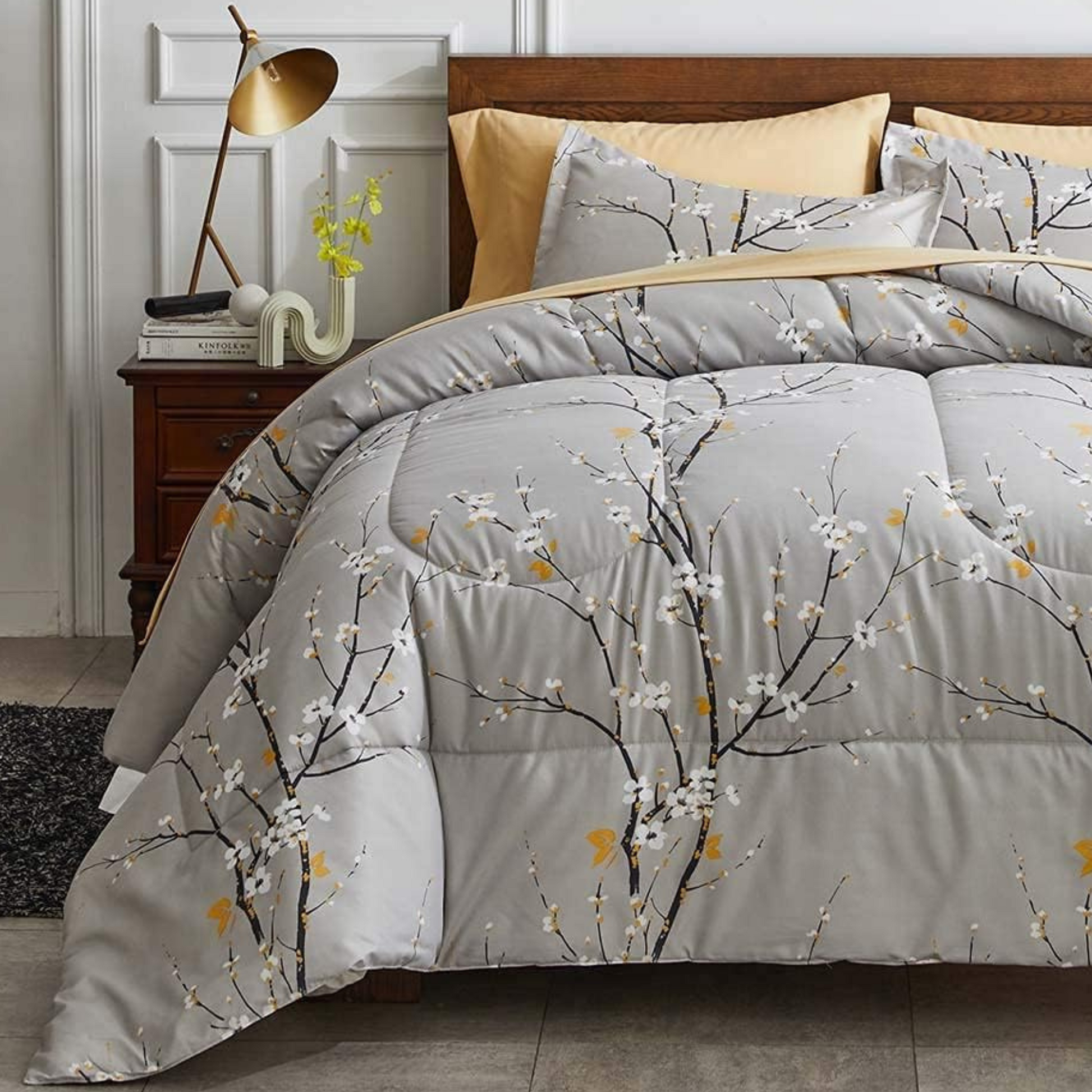 🌸 Refresh and transform your bedroom with this unique Botanical Grey & Tan Floral Branches 7-Piece Comforter Set.