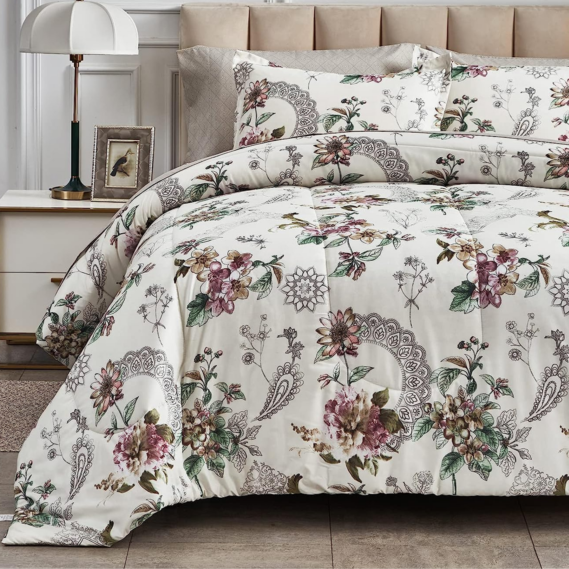 Botanical Pink & Beige Floral 7 Piece Comforter Set