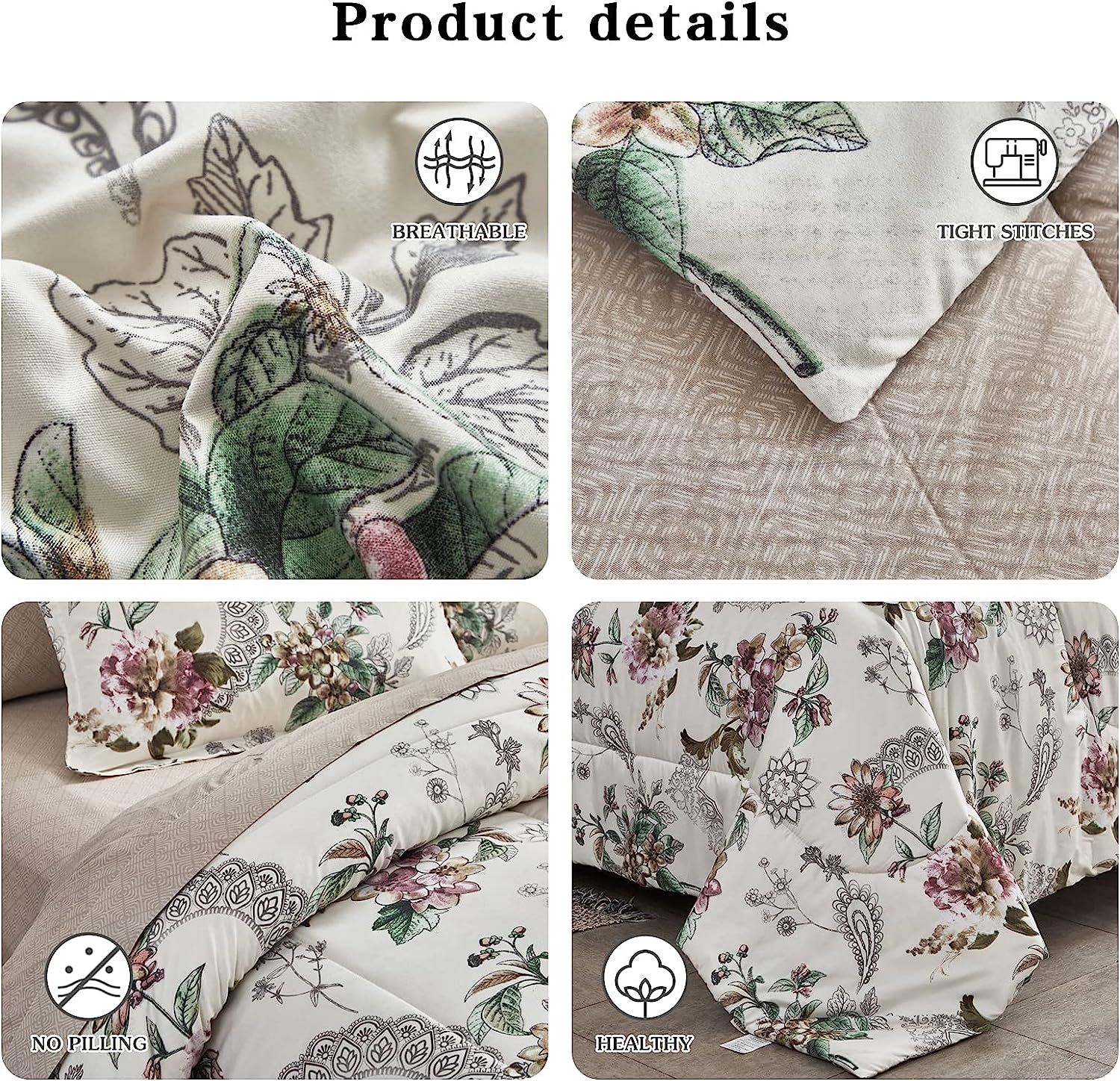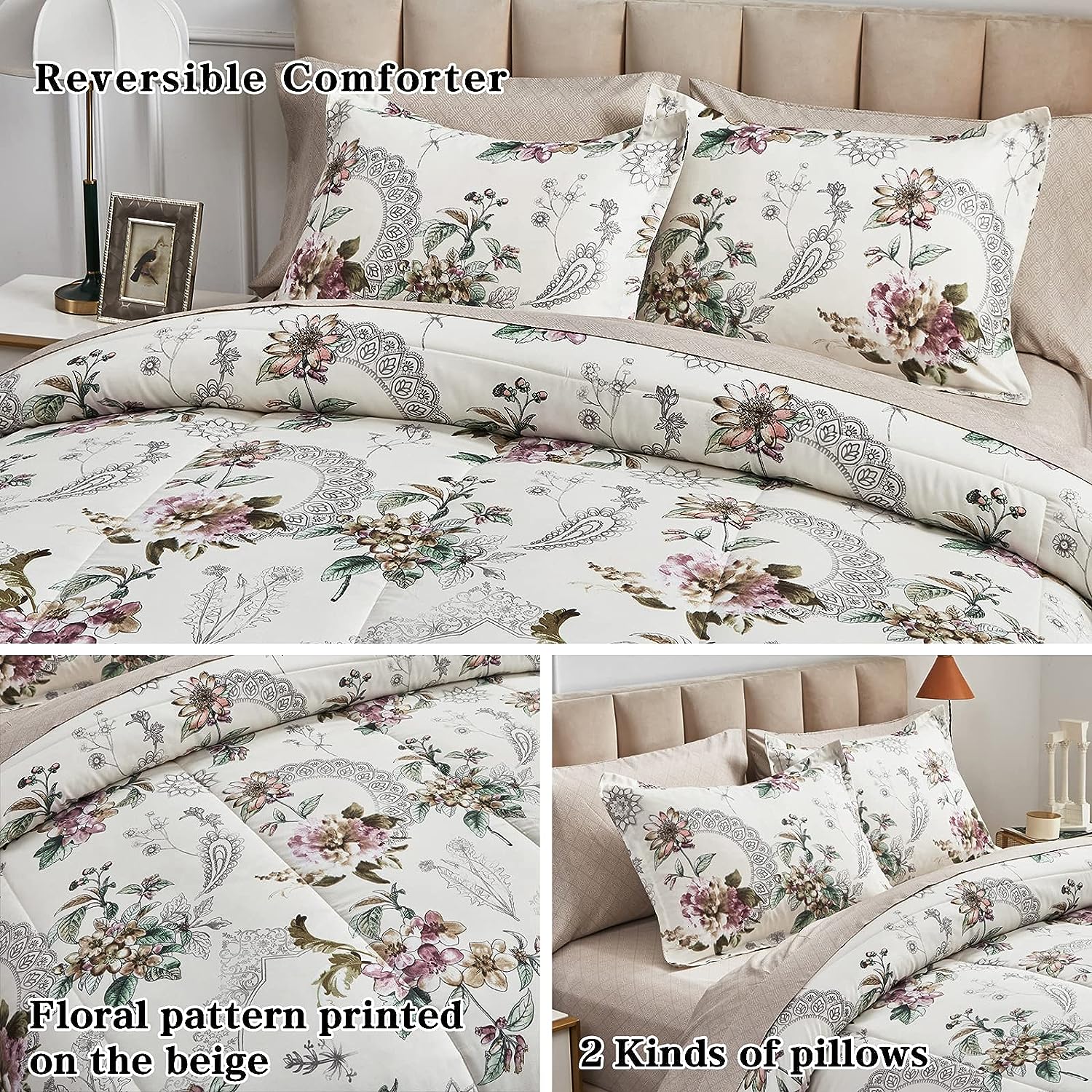 đ¸ Refresh and transform your bedroom with this unique Botanical Pink & Beige Floral 7-Piece Comforter Set.