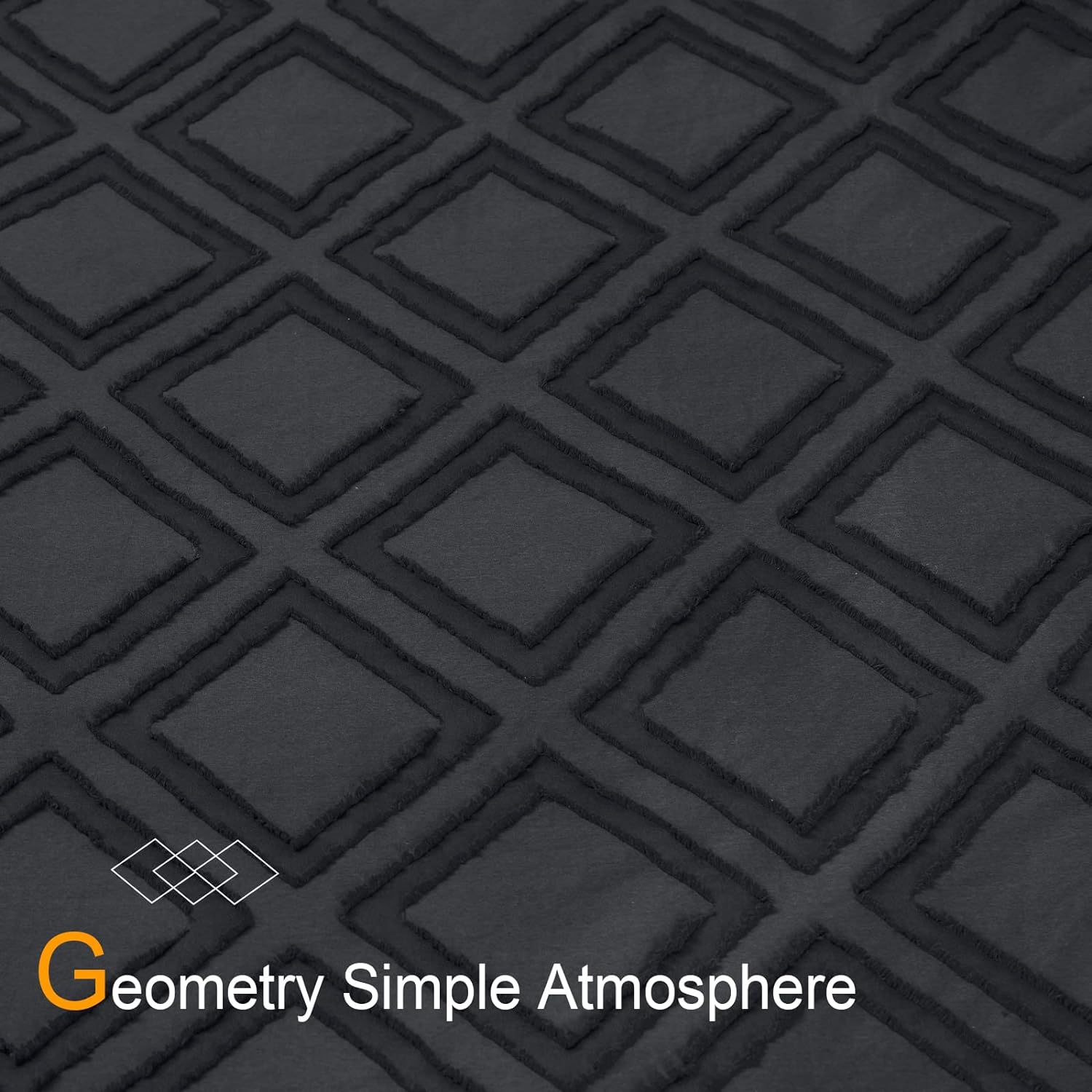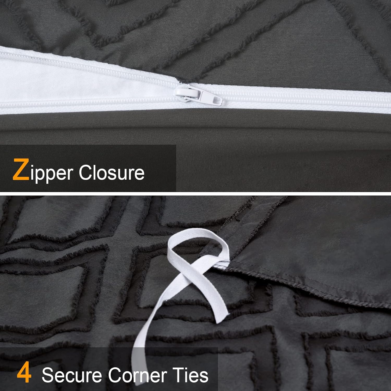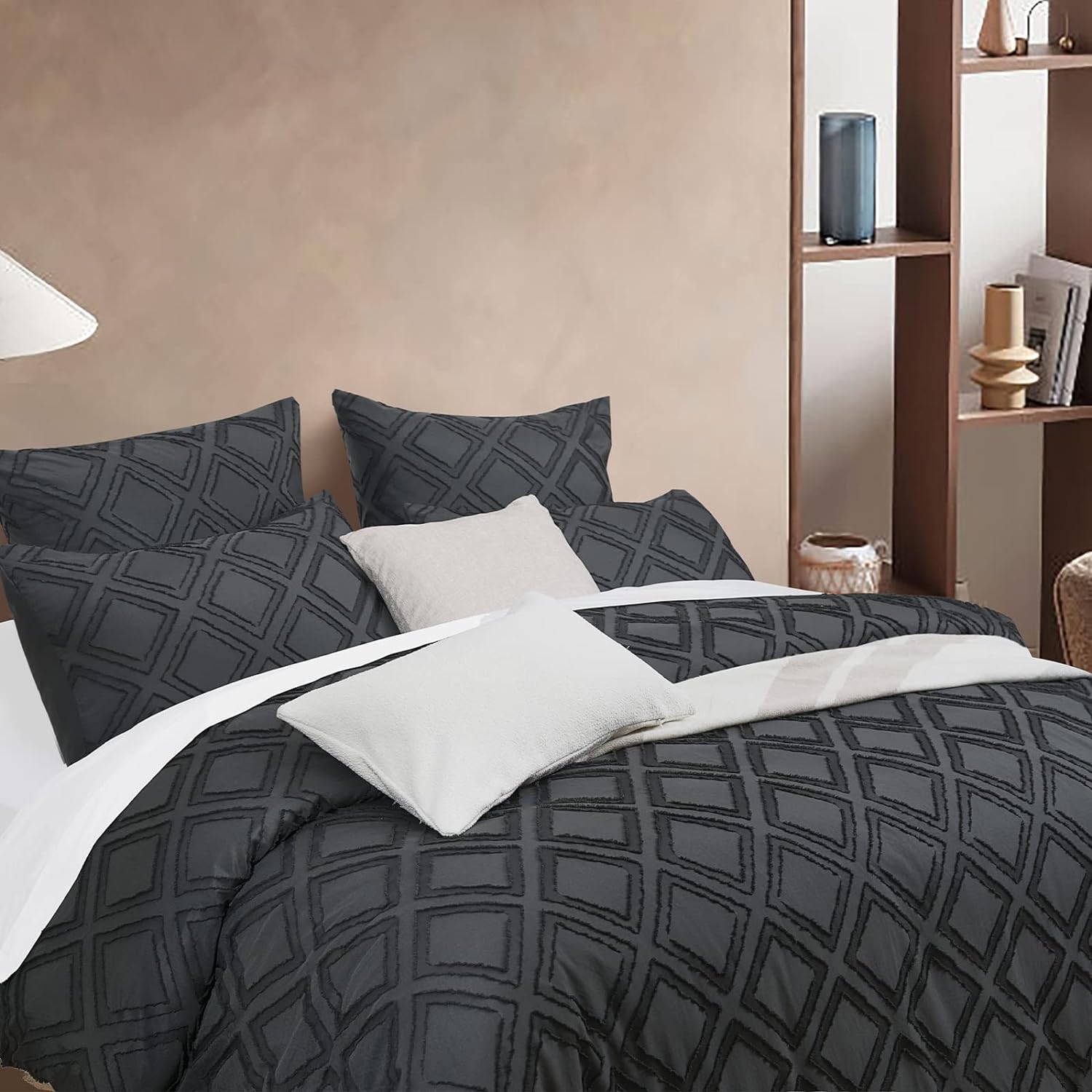Dark Grey Diamond Tufted 3 Piece Duvet Cover Set