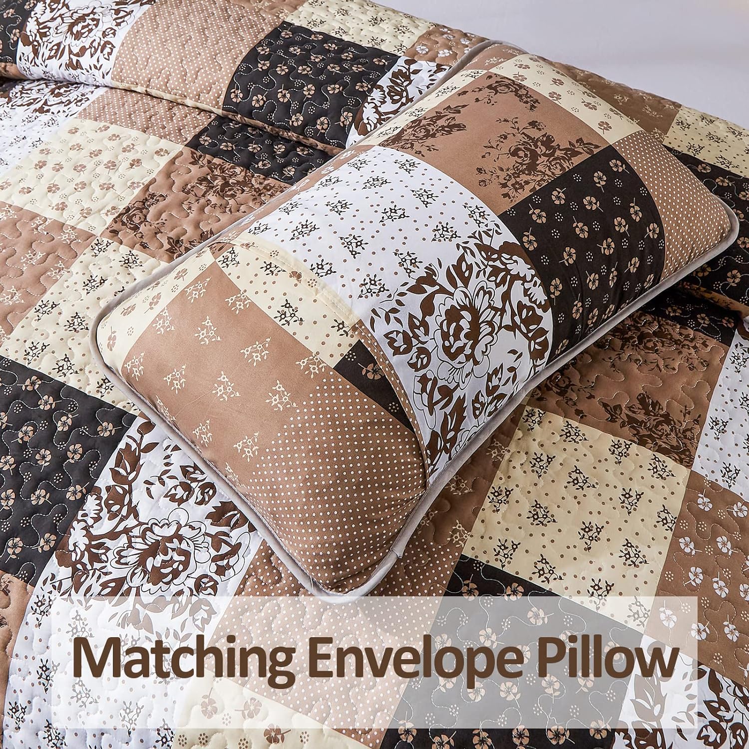 šĀ Brighten up and refresh your bedroomĀ with this beautiful Khaki Floral Patchwork 3-Piece Bedding Quilt Set.
