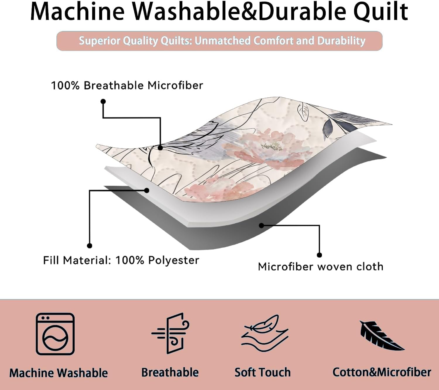 This beautiful abstract floral quilt design with pink, grey and white colours will elevate your space with their vibrant hues!