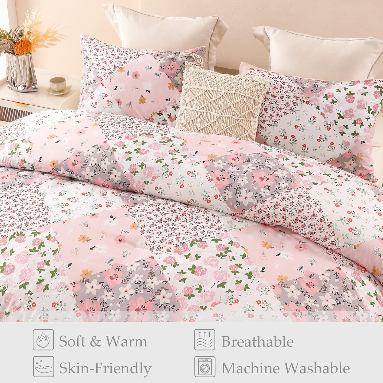 🌸 Refresh and transform your bedroom with this beautiful Pink Floral Patchwork 3-Piece Comforter Set.