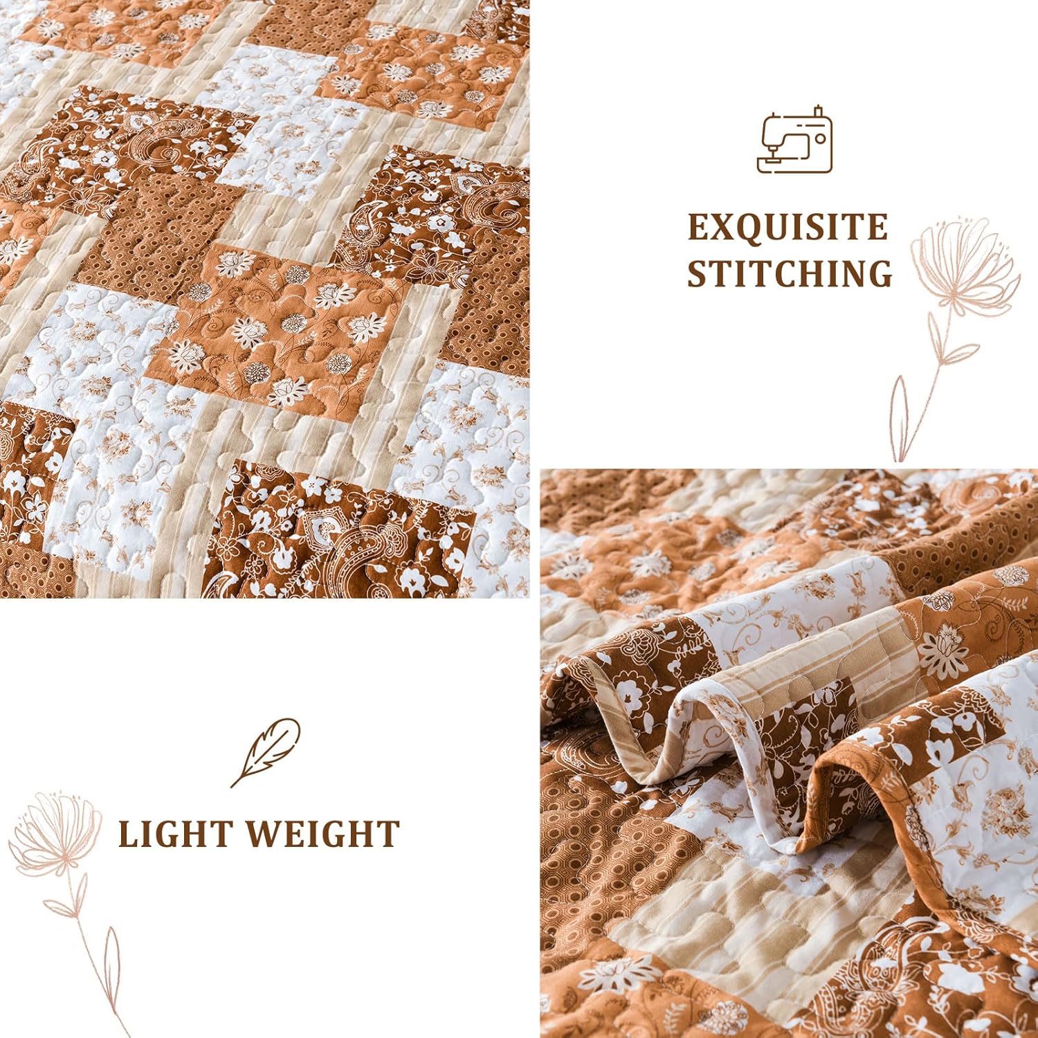 Brown Floral Paisley Patchwork 3 Piece Bedding Quilt Set