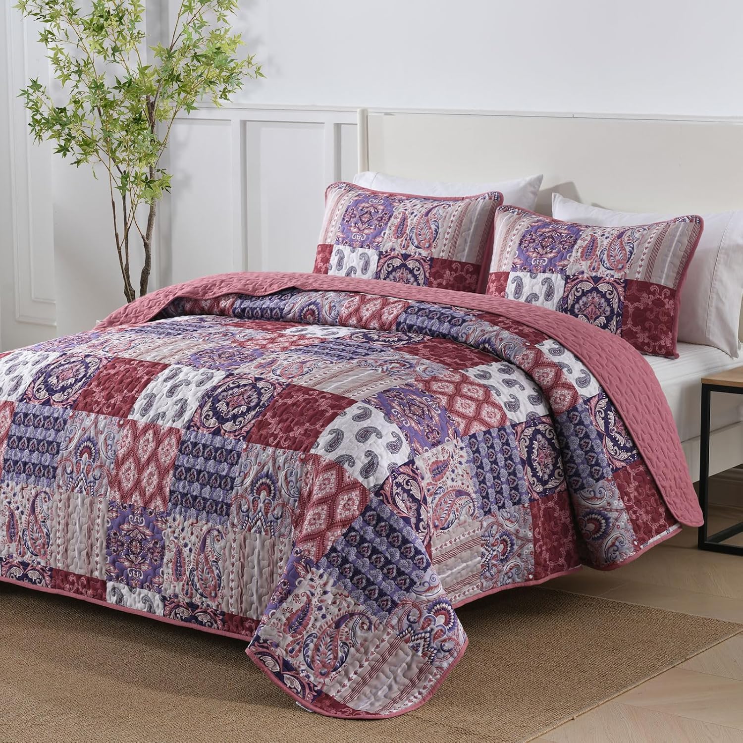 šĀ Brighten up and refresh your bedroomĀ with this beautiful Rose Red Paisley Patchwork 3-Piece Bedding Quilt Set.