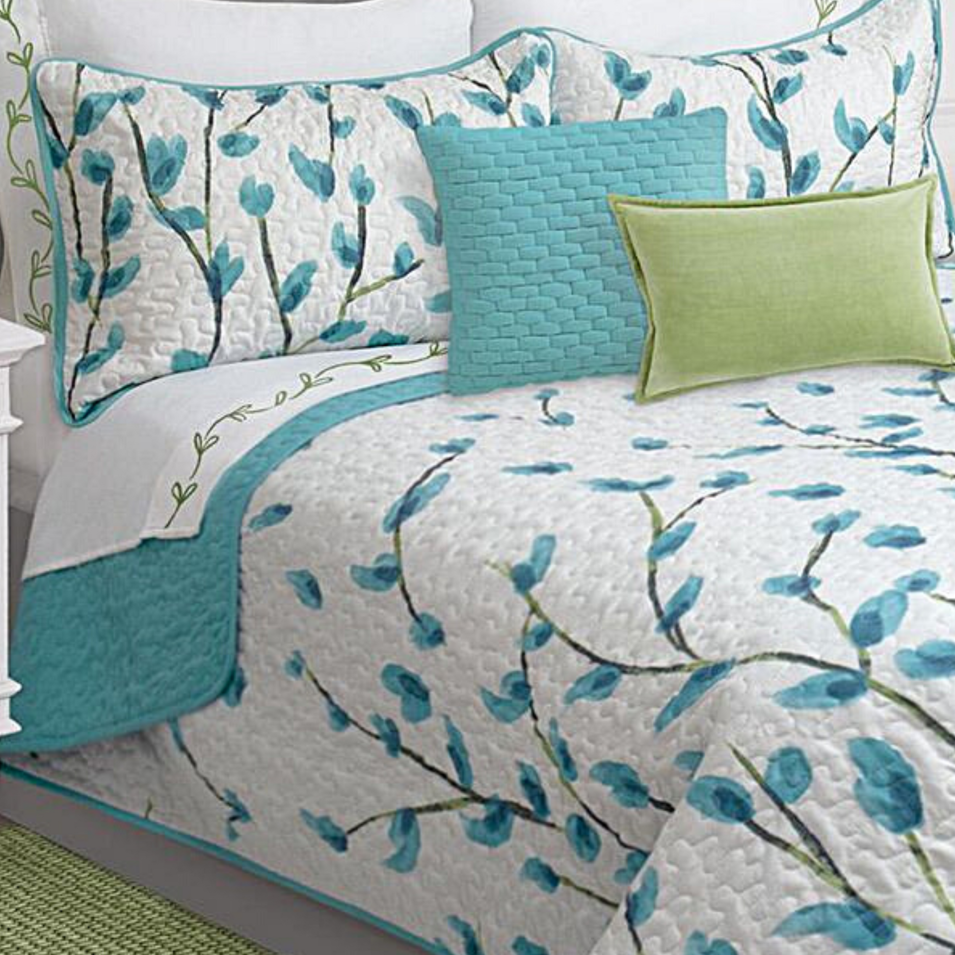 Bring the outside in with this beautiful and elegant quilt set. Subtle refreshing teal blossoms are set on a white background. 💐