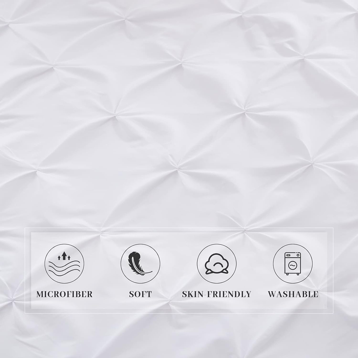 White Pinch Pleated 3 Piece Duvet Cover Set
